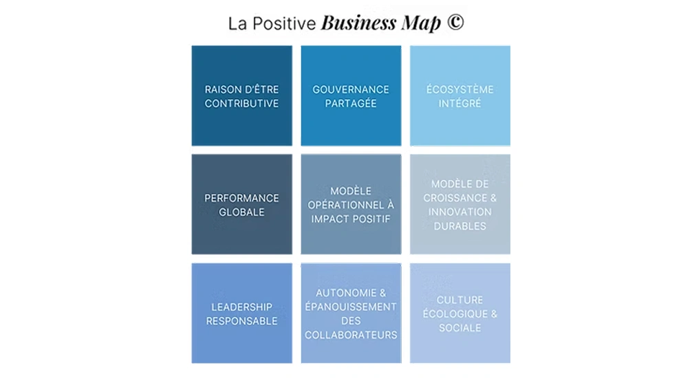 Pour guider nos clients dans leur trajectoire vers une économie souhaitable, nous avons développé la Positive Business Map© : une boussole pour tracer son propre parcours au travers de 9 champs d’action de la responsabilité d’une entreprise.
